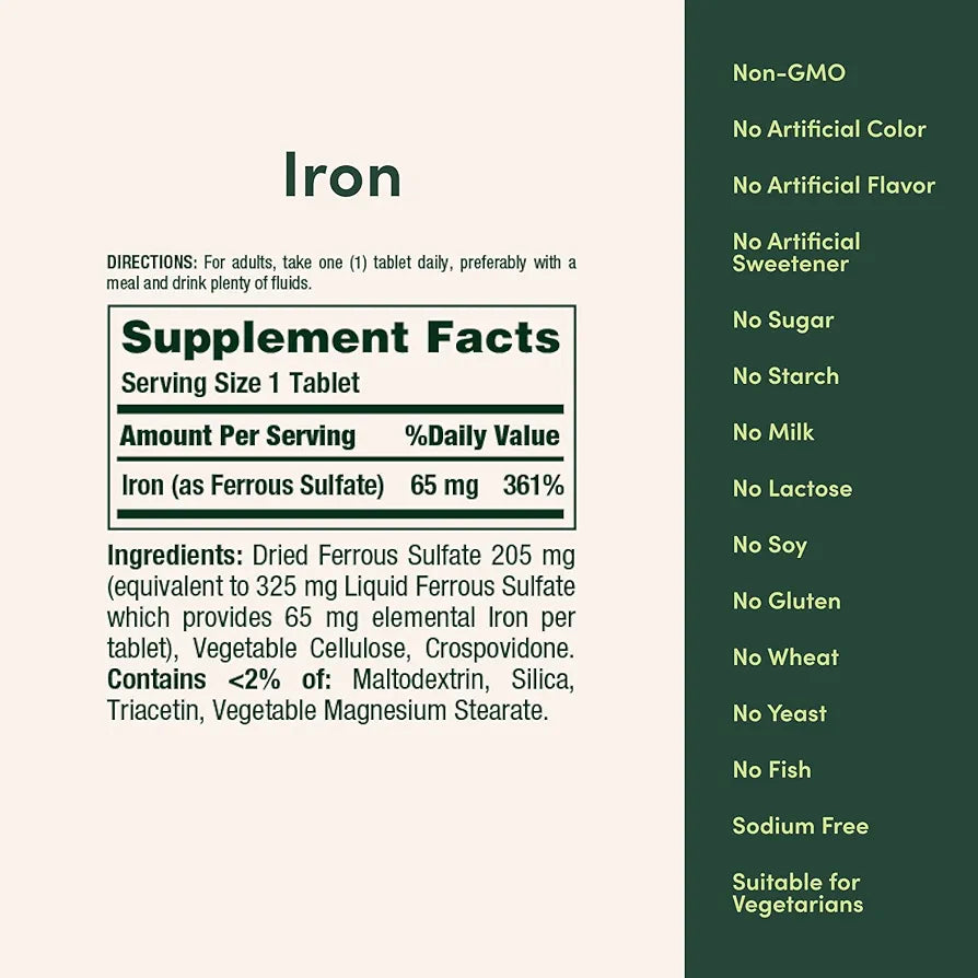 Nature’s Bounty Iron 65mg, 325 mg Ferrous Sulfate | Cellular Energy Support & Promotes Red Blood Cell Production