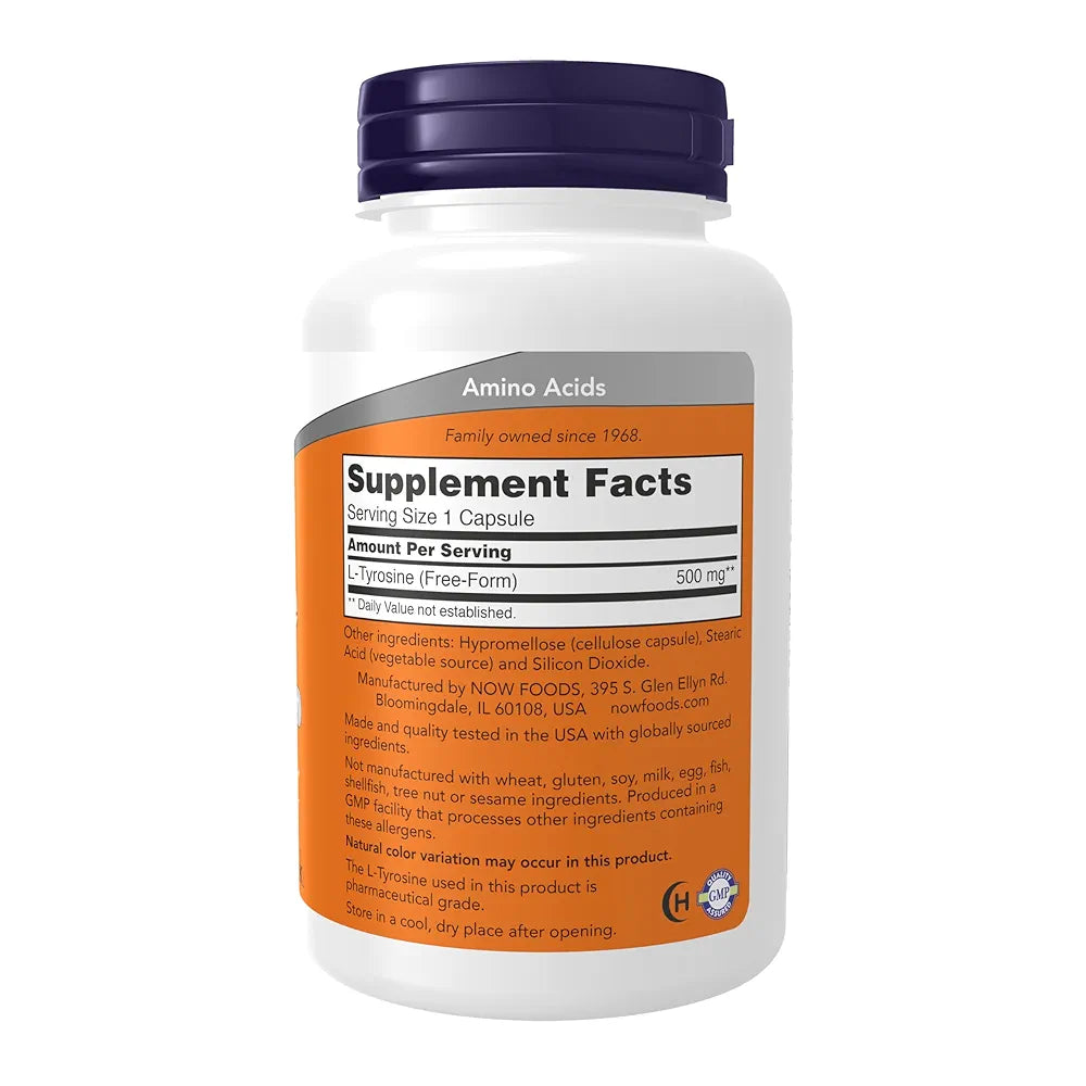 NOW Foods L-Tyrosine 500 mg, Supports Mental Alertness & Neurotransmitter Support*, 120 Capsules