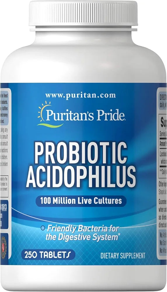 Puritan's Pride Daily Probiotic Acidophilus – 250 Tablets | Gut & Immune Support with 100 Million Live Cultures