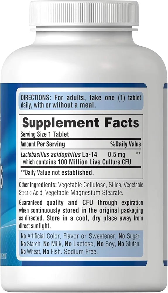 100 million active Lactobacillus Acidophilus cultures per tablet